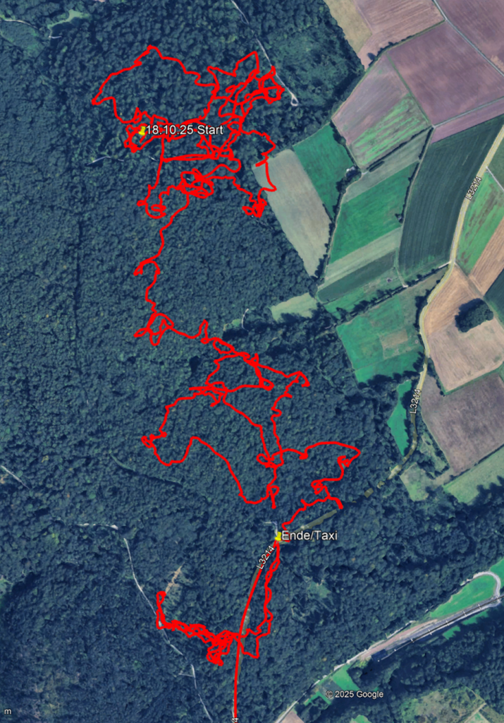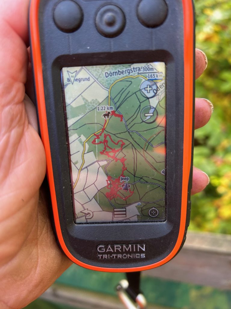 Nach 2 Stunden war ich zwar noch im Revier, aber relativ alleine: Das erstemal über die Straße, das zweitemal über die Straße, dann überlegt, wie man vielleicht anders wieder zurückkommen könnte, dann doch die eigene Rückspur genommen, also das dritte Mal über die Straße…. ABER ICH WOLLTE JA ZURÜCK – und war eindeutig auf dem Rückweg.