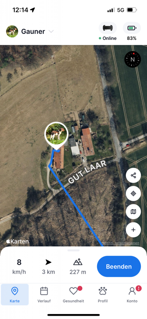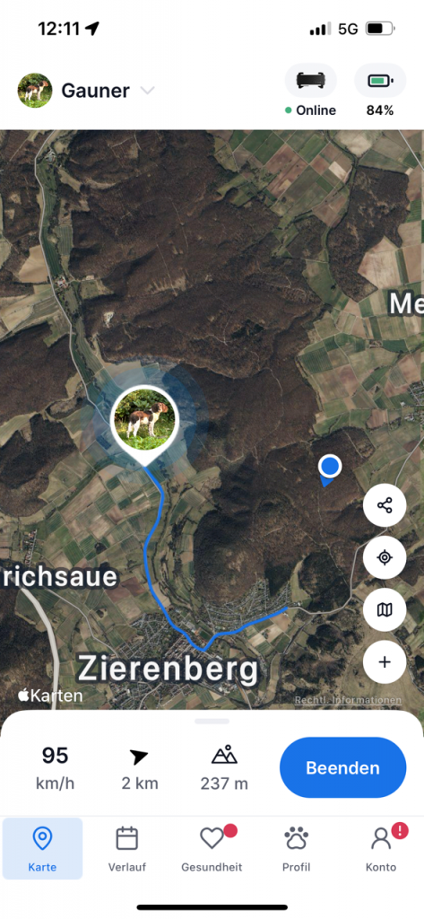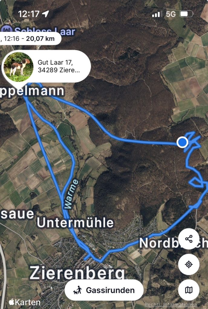 ABER – ich bin ja schon groß! Und nach 1 Stunde und einem Hasen und einem Reh, die ich mit sehr markantem Laut durch die Gegend gejagt habe, habe ich dann die Kreise „erweitert“.