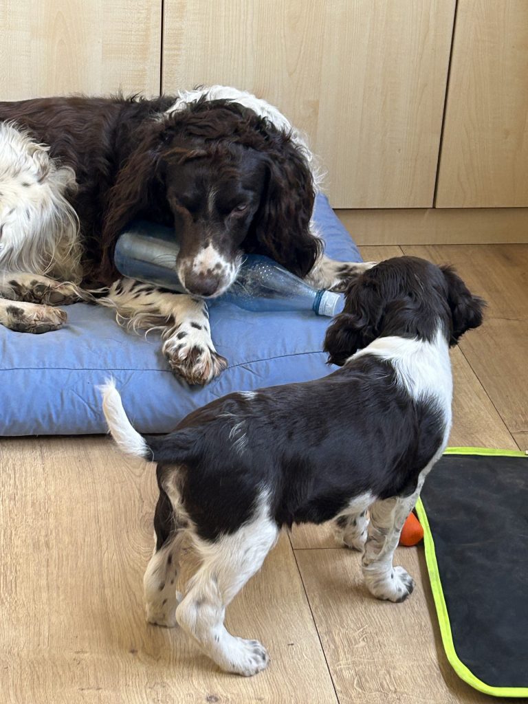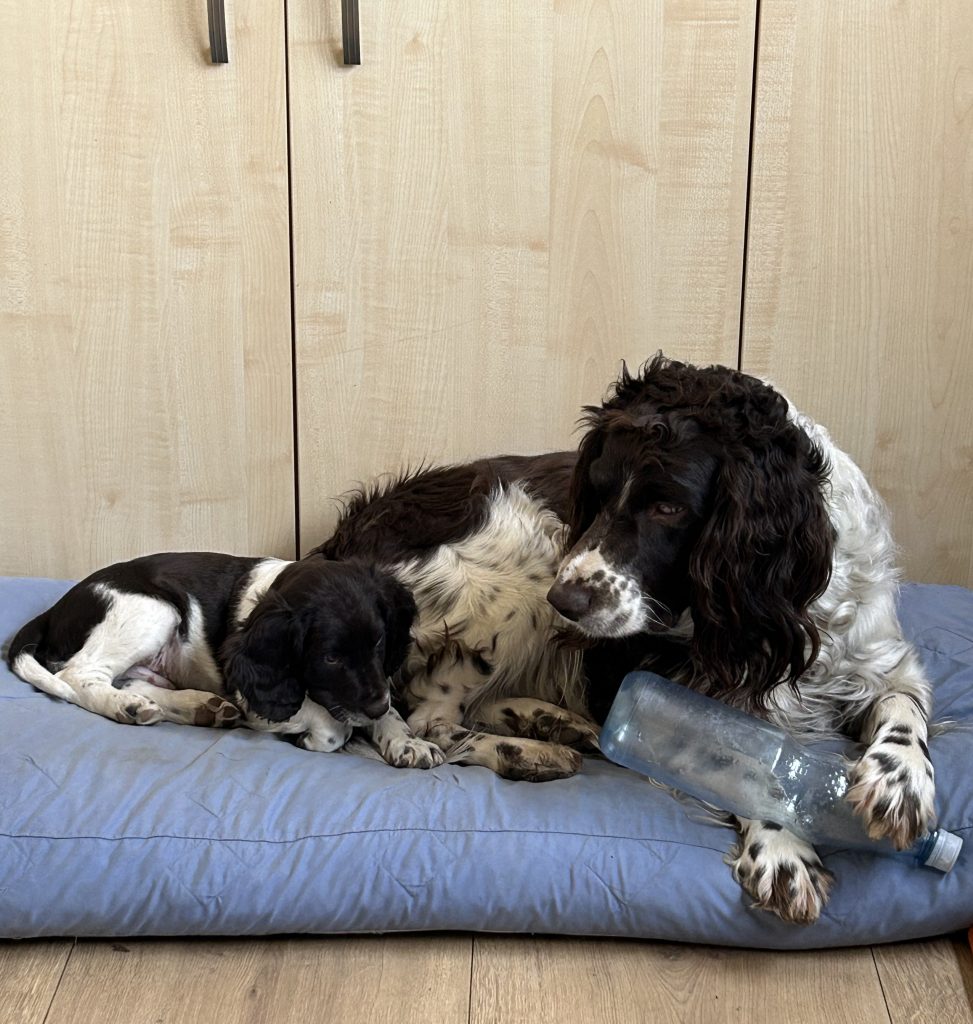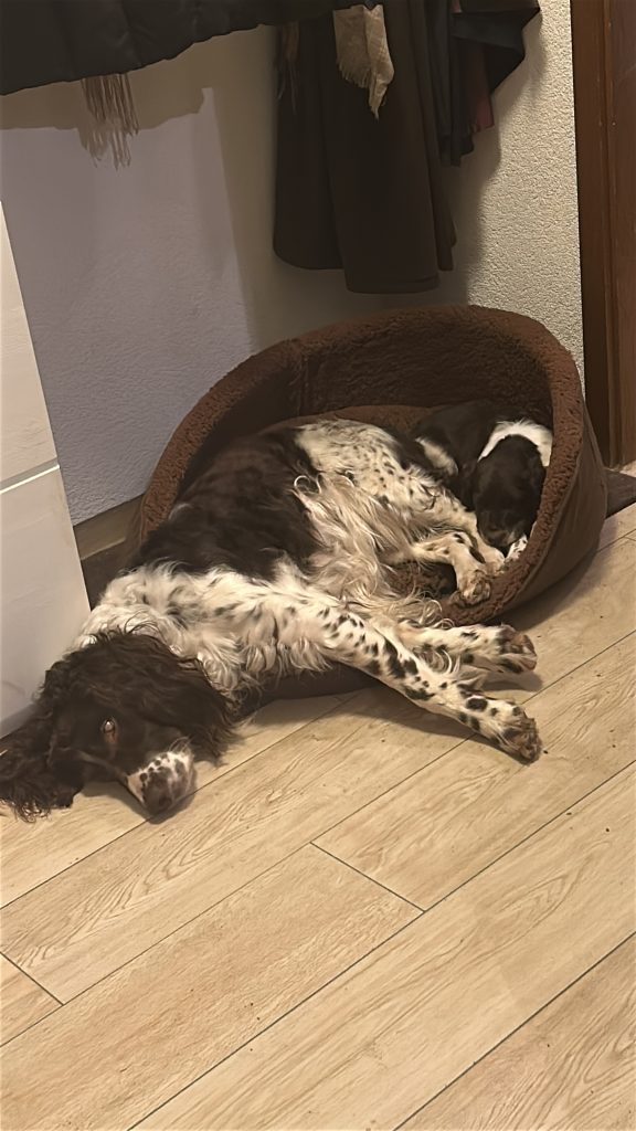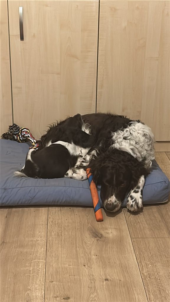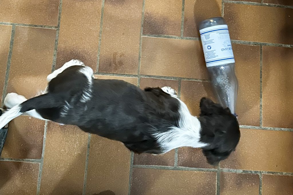 Dann wurde es langweilig, weil Frauchen ein Seminar am PC mitmacht….. Da muss dann der Papa herhalten