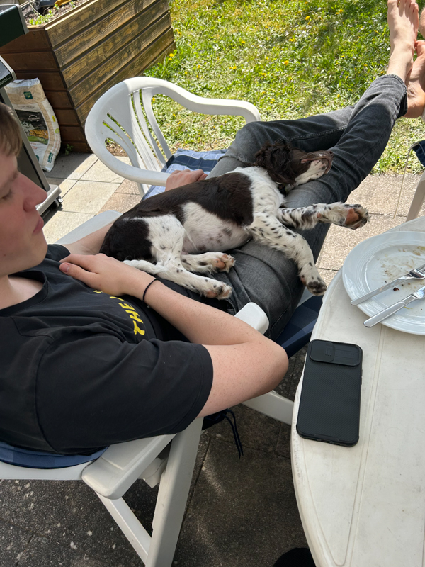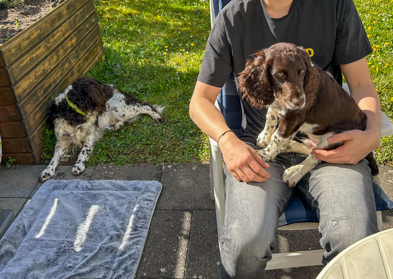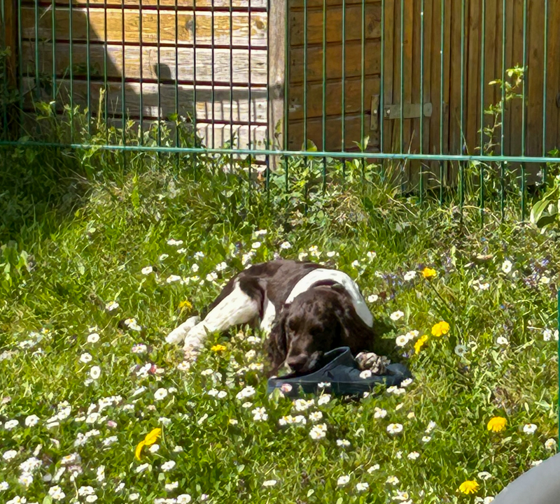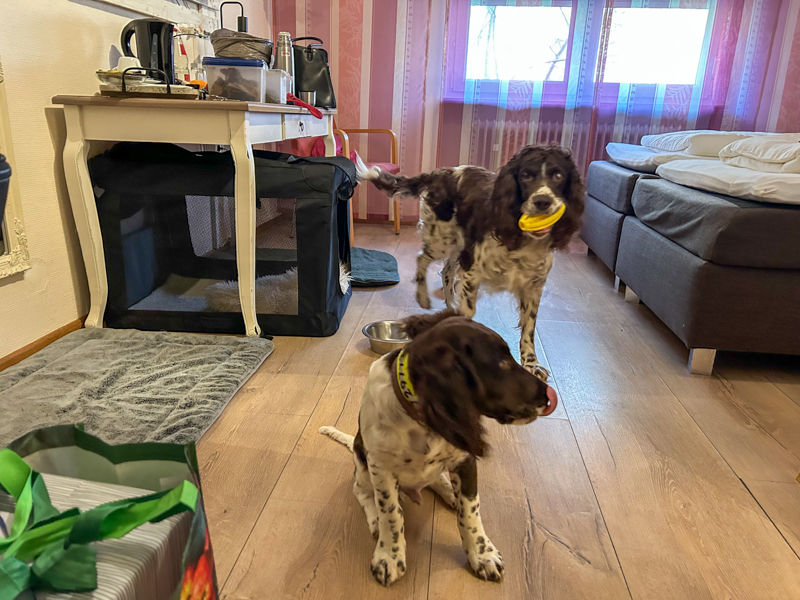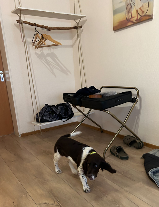 Hotel und Familie Petra Gerlach Allgemein 19. April 2025 26. April 2025 das erste Mal auswärts….. aber unter Aufsicht vom Papa und eingesperrt in der Box kann man nicht allzu viel Blödsinn machen. Ich war soooooo brav…… nur der Schuh musste dran glauben 😉