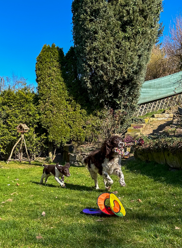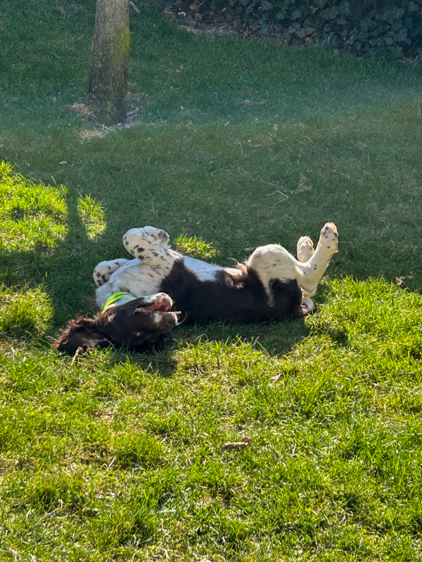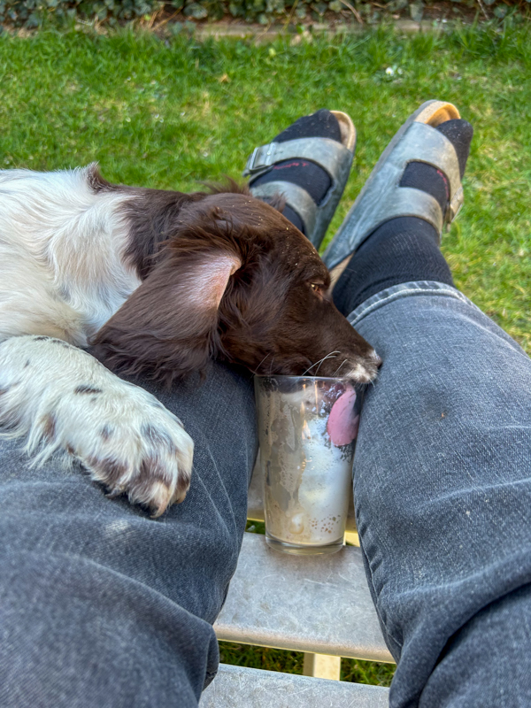 Sommer ??! Petra Gerlach Allgemein 1. April 2025 4. April 2025 für eine Revierrunde viel zu warm – da bleiben wir im Garten und machen WELLNESS Rückenmassage oder Papa ärgern – oder sich einfach selbst beschäftigen aber zum Schluss kam das BESTE: LATTE MACCHIATO……. mhmmmmmmm