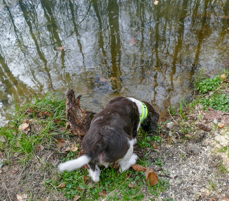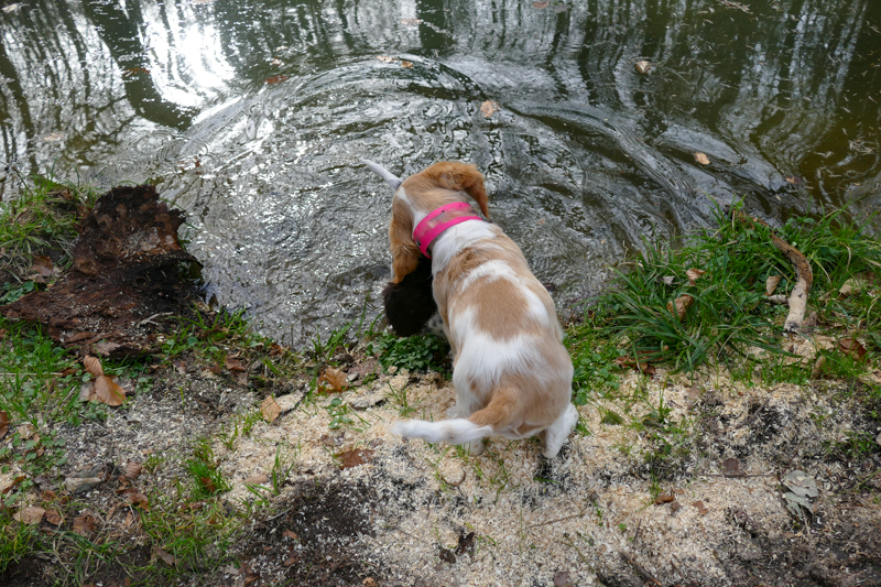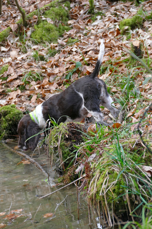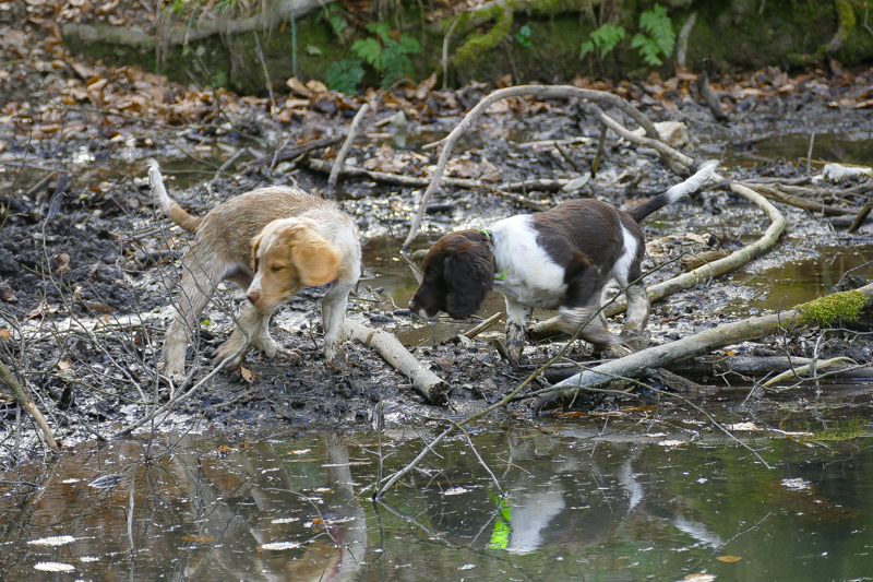 seichten, schlammigen Pfütze….. Das Auto sah danach entsprechend aus. Als er endlich wieder sicher verstaut war, durften Gauner und Gaia das ganze erkunden. Vielleicht hier….. oder hier….. oder vielleicht hier???? oder vielleicht doch lieber…..