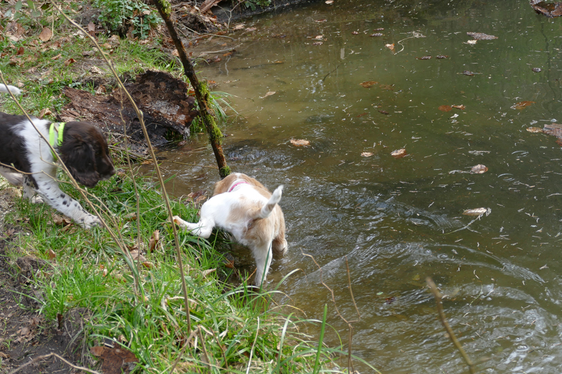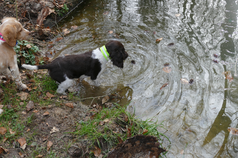 Ein vielversprechender kleiner Teich…. Der Papa war schneller aus dem Auto als man schauen konnte und in der…..