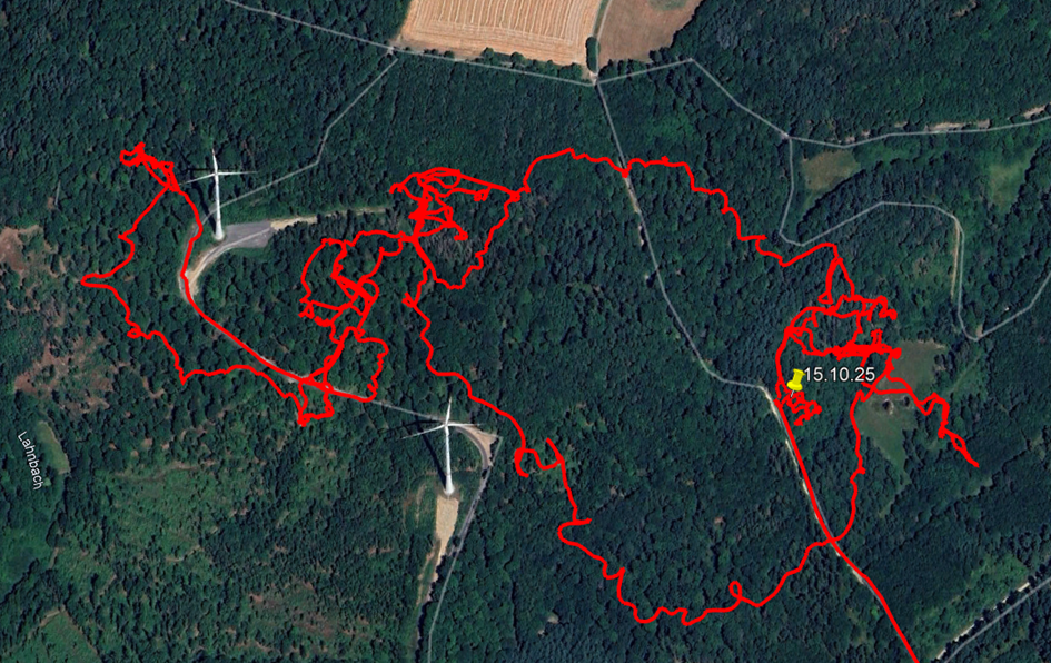 Auf dem Track im rechten Zipfel lag das Tier….. Standlaut, dann war es mir zu gruselig und bin schnell zu Frauchen zurückgerannt. Jedenfalls war die Mittagspause mehr als vorbei und meine Schwester kam heute nicht mehr dran. Ich musste es wohl ein bisschen übertreiben.